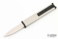 Unusual automatic where the blade is fixed and the release button retracts the guard. polished drop point blade. Has a couple light scuffs and scratches, otherwise great condition.