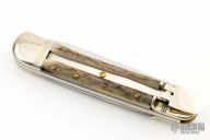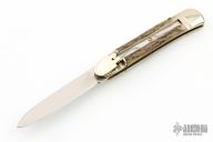 This leverlock auto by Hubertus features a high polish blade, nickel silver front/rear bolsters, stag scales, and brass liners and pins. Opens with a nice snap. Very fast opening. Has a couple light scuffs, scratches, and patina, great condition otherwise.