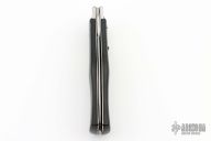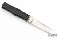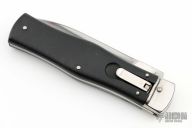 This Leverlock Auto by Mikov Knives features a polished spear point blade with false top edge. The handle is comprised of steel bolsters, lever and pins with black plastic scales over steel liners and backspacer. Strong leaf spring action. Has some light scratches, otherwise excellent condition.