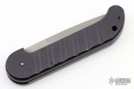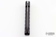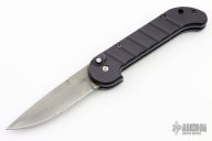 This Black Knife features a satin finished spear point blade with swedge. The handle has a black anodized machined aluminum frame with a lanyard hole in the pommel. Has some light scuffs and scratches great condition otherwise.