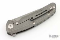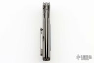 The Reate Epoch features a satin finished, CTS-204P blade with notched thumbrest and flipper. The handle has a bead blasted titanium frame with MokuTi inlay, titanium backspacer and tip up clip with ceramic ball inset. Nice detent, lockup, blade seating and action. Comes with original box and nylon zippered case. Excellent condition. #114/400.