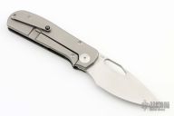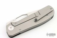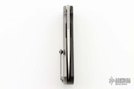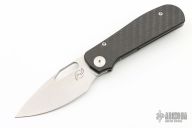 This Field Duty by Reate is a Liong Mah design, it features a satin finished blade with notched thumbrest and a thumbhole. The handle has a carbon fiber and blasted titanium frame with matching backspacer.   Includes a padded velcro case. Excellent Condition.