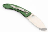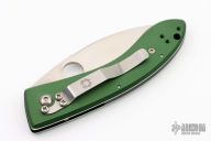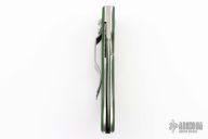 This Bob Lum Chinese folder has a satin plain edge blade and green aluminum handle with a tip up or down reversible stainless steel clip. Includes original box. Excellent condition. #231