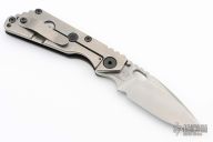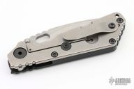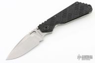 This MSC SNG framelock folder by Mick Strider features a stonewashed blade and a Crosshatch black G-10 and stonewashed titanium frame and tip up titanium clip. Includes Hinderer "Lock Bar Stabilizer" for maximum reverse lock retention. Nice detent, lockup and blade seating. Excellent condition.