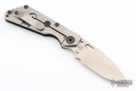 This MS SNG framelock folder by Mick Strider features a satin finished blade and a tire tread G-10 and stonewashed titanium frame and tip up titanium clip. Includes Hinderer "Lock Bar Stabilizer" for maximum reverse lock retention. Nice detent, lockup and blade seating. Excellent Condition.
