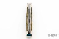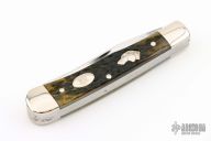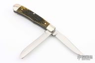 This Two-Blade Christmas Trapper from Ka-Bar and Union Cutlery Company features polished blades with nail nicks. The handle has a nickel silver bolsters and pommel, jigged bone covers with two nickel silver escutcheons, brass liners and stainless steel back springs. Has some oxidation on the kick of one of the blades and a small spot on the spine of the handle, otherwise good condition. Numbered 118 on "A" side bolster. Includes original box and Certificate of Authenticity.