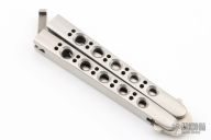 Balisong USA started manufacturing butterfly knives in the late 1970s, then changed its name to Pacific Cutlery in the early 1980s, before finally becoming Benchmade. The earlier knives featured a wide variety of custom blade designs (many of which were hand ground by master knifemaker Jody Samson, well known for making the swords in the movie Conan the Barbarian), as well as a number of exotic inlays for the handles (ivory, prehistoric ivory, scrimshawed ivory, mother-of-pearl, ebony, tropical woods, etc.)