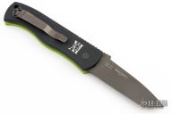 This Prototype CQC7 Auto by Pro-tech knives features a black chisel ground tanto blade with notched thumbrest. The handle has a black aluminum and green/black G-10 frame, tip up black stainless steel clip. Comes with original box and papers. Excellent condition.