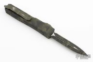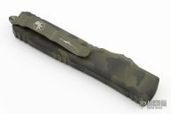 This Ultratech OTF automatic by Microtech features a D/E Olive Camo blade with one fully serrated edge. Olive Camo aluminum contoured frame with black hardware and tip down stainless steel clip. Dated 09/2022 and #402. Includes original box and papers. Excellent condition.
