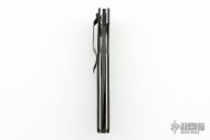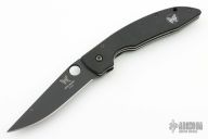 This AFCK liner lock folder from Benchmade has a clip point blade with thumbhole and a notched thumbrest. Handle is black G10 over titanium liners, black backspacer, lanyard hole. Black stainless steel tip down pocket clip. Has some wear on the blade finish, otherwise good condition.