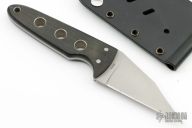 This FB09 Ronin is a Michael Janich/Mike Snody design executed by Spyderco. It features a matte finished wharncliffe style blade with notched thumbrest. The handle is comprised of black linen micarta with hollow pins and lanyard tube over full tang construction. Includes kydex sheath. Has some light spots on the blade, otherwise good condition.
