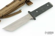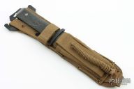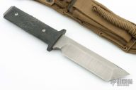 "The XM-7 Knife has been developed over 4 years of hands on experience and feedback from USMC Explosive Ordnance Disposal Technicians both at home and in multiple combat zones. It provides a solid tool to pry, hammer, chop, probe and stab. The Tanto point allows most of the damage from the abuse of digging to be focused there and leave the main edge for whatever else may arise. The Asymmetrical, chisel style grinding allows for multiple and varied angles of attack when prying in tight quarters. The G-10 Grip is CNC machined to provide maximum grip, and control, with or without gloves. The G-10 material is virtually impervious to all of the conditions that an operator can survive in. The wrapped construction shields the tang from the elements and minimizes the chances that corrosion is able to build under the handle. This knife is no longer being made by the maker. Excellent condition. Comes with a nylon sheath.