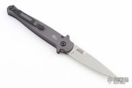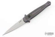 This Launch 8 by Kershaw is a Matt Diskin design, it features a stonewashed blade. The handle is dark grey aluminum with a carbon fiber inlay and a tip up reversible black stainless steel clip. Comes with original box and papers. Excellent condition.