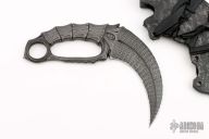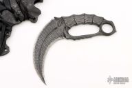 This Carved Karambit by Sage Blades features a hand forged, carved, serrated hawkbill blade, .297" blade stock and 2.231" blade depth at the ricasso, integral construction, 1" ring at the butt. Comes with a kydex sheath, maker's card, and info sheet. Excellent condition. Very cool!
