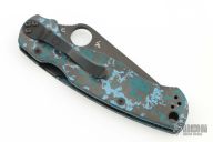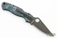 This Paramilitary 2 Linerlock Folder from Spyderco has a black finished clip point blade with thumb hole and notched thumb rest. Handle has black/blue Fat Carbon scales with stainless steel liners and stainless steel 4-way reversible clip. Comes with original box and papers. Excellent condition.