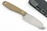 This Alpine Fixed Blade by Axial Gear features a stonewashed blade with .099" blade stock and 1.103" blade depth, full tang construction. The handle has OD Green canvas micarta scales. Comes with a kydex sheath with Ulti-Clip, original box with sticker, lanyard with bead and lanyard pick. Excellent condition.
