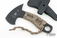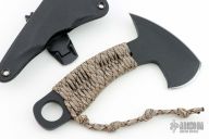 The 0.32" thick 1095 steel feels as solid as it looks, but won't weigh too much on your belt. The camo paracord wrap has obvious uses for survival, but also gives a comfortable grip on the knife. The minimalistic Kydex sheath keeps the weight down, but holds the Micro Hawk in place securely. The Micro Hawk was designed to be an EDC defensive tool, small enough to carry daily, and can also be versatile. Excellent Condition.