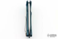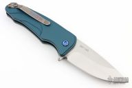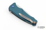 This Smooth Criminal by Medford knives features a stonewashed drop point blade with flipper. The handle has a blue aluminum frame with a titanium clip. Nice lockup and blade seating. Comes with a padded zippered case. Excellent Condition.