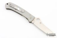 This Bob Lum designed folding knife by Spyderco features a satin tanto style blade marked with the Lum Logo. Stainless steel liners. Textured grey G10 scales. Spyderhole opening. Comes with original box. Nice detent, lockup and blade seating. New condition.