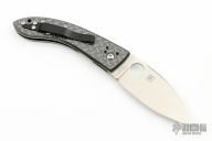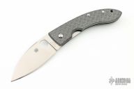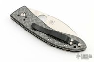 This Lum Chinese folder from Spyderco has a satin finished blade with thumbhole and false top edge. The handle has carbon fiber scales, stainless steel liners, and a black up or down reversible stainless steel clip. Comes with original box and papers. New condition.