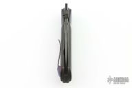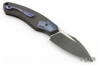 This Davless Knife by David Lespect was produced by Custom Knife Factory. It features a black tumble finish S90V blade with swedge and notched thumbrest, front flipper style opening. The handle has Titanium frame, milled carbon fiber scales with DarkTi inlay, and DarkTi tip up clip. Rides on bearings, nice detent, lockup and blade seating. Comes with original pouch and COA dated 12/2023. Excellent Condition. #384