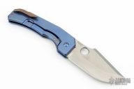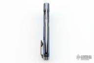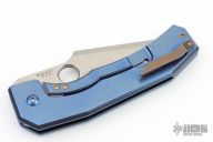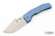 This Tyr Framelock has a tumble finished clip point blade with thumbhole. Handle has an anodized stonewashed titanium frame and matching tip up clip. Nice detent, lockup and blade seating. Comes with maker's zipper case. Excellent condition.