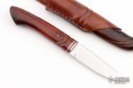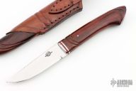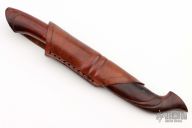 This Puukko from Citadel Knives features a mirror polished drop point blade with fileworked blade spine. 0.108" blade depth and 0.764" blade depth. The handle is comprised of a carved wood grip over hidden tang construction. Includes leather sheath with belt loop.  Excellent condition.