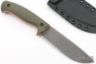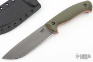 This Red Wolf by Work Tuff Gear features a dark wash finished SK85 blade with .149" blade stock and 1.313" blade depth, full tang construction with checkered OD green G-10 scales. Comes with original box, sheath and extras. Excellent condition. Dated 08/2023.