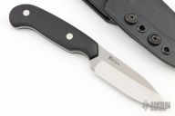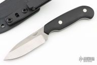 This Mombassa by Steve Woods and Ryan Wilson features a satin finished blade with stonewashed flats and a notched thumbrest, .105" blade stock and .972" blade depth, full tang construction. The handle has black G-10 scales. Comes with a kydex sheath and a zippered case. Comes with COA dated May 2024. New from maker!