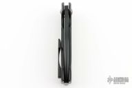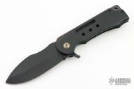 This Indicator Framelock flipper by Mazur Customs features a black blade with a flipper.  The handle has a black ceramic coated titanium frame with matching tip up clip, and a carbon fiber backspacer. Comes with a zippered case and COA dated January 2018. Nice lockup and blade seating. Excellent Condition.