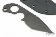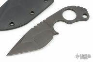 This SLCC by Mick Strider features a black duplex ground blade with notched thumbrest, .212" blade stock and 1.649" blade depth, full tang construction. Comes with a kydex sheath and velcro pouch. Has some scuffs and scratches otherwise excellent condition.