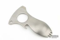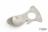 This Spork by Sal Manaro is a Liong Mah design. It is made from orange peel finished titanium, bottle opener, prybar, lanyard hole. Comes in a soft pouch. Excellent condition.