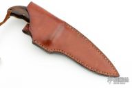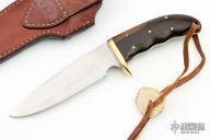 This knife features a hand rub satin finished blade with, .134" blade stock and 1.307" blade depth, full tapered tang construction. The handle has a brass guard, wood scales with brass pins and liners. Comes with a brown leather sheath with "DLP" on the back. Has some light scratches, otherwise excellent condition.