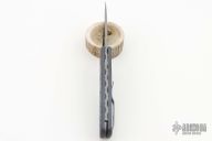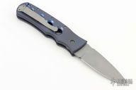 This tactical automatic from Z Custom Knives features a bead blasted drop point blade with a fileworked thumbrest. The handle features a bead blasted and anodized titanium frame with a fileworked backspring. Tip up clip. Comes with zipper case. Has a couple light scuffs, excellent condition otherwise.