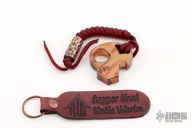 Skull Popper V3 by Copper Shed Metal Works. .5" thick, .616" hole, 1.75" wide overall. Comes with maker zipper case, COA and leather tag. Has flamed finish, excellent condition.
