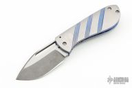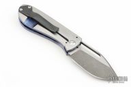 This Golem framelock by Doc Shiffer features a two-tone satin finished blade with thumbhole. The handle has a satin and anodized finished titanium frame, with satin finished titanium posts, black tip up clip and stainless hardware. Nice detent, lockup and blade seating. Comes with COA dated 10-30-18. Has a few light scratches, otherwise excellent condition.