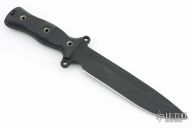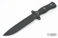 This Team Gemini Special A2 Edition by Busse features a black coated drop point blade with fullers, .264" blade stock and 1.578" blade depth, full tang construction. The handle has black G-10 scales, extended tang with lanyard hole. Excellent condition.