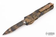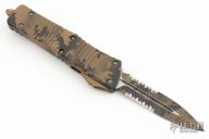 This Signature Series Troodon OTF automatic features a double edged camo blade with partial serrations. The handle is composed of camo aluminum with a stainless steel clip. Glass breaker. S/N #012, dated 08/2022. Comes with original box and papers. Excellent condition.