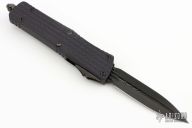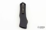 This Combat Troodon OTF automatic by Microtech knives features a double edged, DLC finished blade. The handle has a DLC frag pattern aluminum handle with black hardware, tip down carry. Glass breaker. Comes with original box and papers. Excellent condition. s/n 256 dated 07/2021.