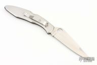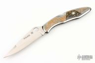 This Police knife by Spyderco features satin finished blade with a thumbhole. The handle is stainless steel with stone inlays. Has a tip down stainless steel clip. Comes with a Spyderco zipper case. Has some light scratches, excellent condition otherwise.