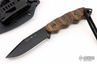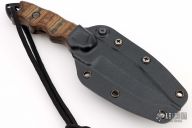 Matthew J. Leathers was a highly decorated US Navy SEAL that sadly lost his life in a deep sea diving exercise. During his nine years as a SEAL, his courage and unflinching devotion to duty gave rise to the phrase "Matt Would Go" by the leadership of SEAL Delivery Vehicle Team One. Matthew was known as a perfectionist and had designed a knife that would hold up to his high standards. It was created out of a coil spring from a scrapped HUMVEE and forged in his own homemade forge. Matthew's father, Tim, created the Matt Would Go company as a tribute and has partnered with Buck to bring the knife to market. This tough hard use knife has a 5160 spring steel drop point blade with a black coating. The tang runs full length into a sharp point at the butt with jimping on the spine in two places and features deep finger grooves. Highlighting the design are custom camo themed multi-color micarta handles that have been bolted-on. Includes a textured Kydex sheath with a TEK-LOK belt clip. Has some scratches, otherwise good condition.