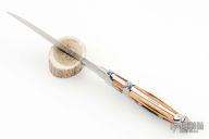 "My first business followed my first love - falconry. I had a small machine shop and produced equipment for the sport of falconry. In the early '90's, custom-made knives began to catch my interest, and I toyed with a couple of knives using the machines I already owned. My intrigue with the art grew, and in 1994 I went to the PKA show in Denver. I wanted to see what people who were making their living from fabricating knives were producing. At that show I was fortunate to meet J.P. Moss, an outstanding knifemaker from Texas. J.P. offered excellent one-on-one training in his shop, which I took advantage of the next fall. I look back on the three weeks I spent with J.P. as the beginning of my career as a knifemaker. The more I learned about knifemaking the more questions I had. One evening, while I was reading a knife magazine, I found an advertisement for a knifemaker that lived only a couple of hours from me. Because I was so new to the field I had had no idea who S.R. Johnson was. In retrospect, I'm glad I didn't know who he was in the knife-making world because I would have never found the courage to telephone him. I called Steve Johnson of Manti, Utah and began pestering him with questions. During our initial conversation he asked me what I did for a living and I told him I make equipment for the sport of falconry. Another lucky break for me - it turned out one of his sons had been trying to learn about falconry. Soon thereafter, I spent an afternoon with Steve and his son flying falcons, and Steve asked if I would like to see some of his knives before I went home. That evening was a major turning point in my career because after seeing Steve's knives I had a clear mental image of the height of artistic perfection I wanted to achieve. I spent as many weekends with Steve working in his shop as he would allow me. I never spent a day with him that I did not learn something new. He was very gracious and generous with his knowledge and never made me feel small. I will always credit Steve with being my mentor and inspiration. He taught me to never stop looking for detail in the pursuit of perfection. He also gave me the confidence to develop my own style and creative ideas. Dietmar Kressler invited me to display my knives at the 1997 Munich show. After the show he asked me to work for him in his shop the following summer. I spent most of the summers of '98 & '99 working for Dietmar learning to make integrals. In the short period of time Dietmar and I spent together he greatly influenced my style and methods of knifemaking. He taught me his technique of using hand files to accomplish symmetry and looking for light distortions to find mistakes. Obviously, my style is a combination greatly influenced by Johnson and Kressler."