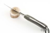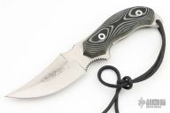 This knife features a satin finished upswept blade with a false top edge, .161" blade stock and 1.462" blade depth, full tang construction with micarta scales. Excellent Condition.