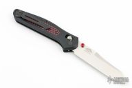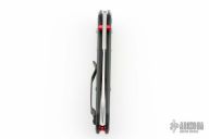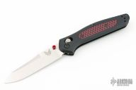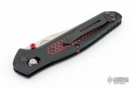This 940-1701 Osborne Axis Lock Folder from Benchmade has a tumble finished CPM-20CV clip point blade with false top edge and dual thumbstuds. Handle has black G-10 scales with red C-Tek inlays, red standoffs and black finished stainless steel tip up clip (RH/LH Reversible). Knife has centered blade seating and strong lockup. Comes with original box and papers. Excellent condition.