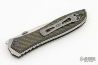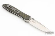 This knife by Zero Tolerance is an Emerson design. It features a two-tone blade with thumbdisc. The handle has green carbon fiber scales, stonewashed titanium frame and tip up titanium clip, left or right reversible. Comes with original box, and papers. Excellent condition. s/n 1985