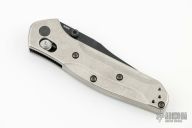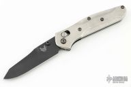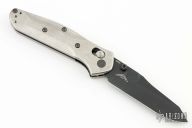 The Benchmade Osborne 945BK-1 is the same beloved Osborne design that has made the 940 a titan of the industry, but it's been shrunk down to a more comfortable size for everyday carry. The knife is made of CPM-S30V steel just like its big brother, and has a black G-10 handle with a blue layer near the center, and black stainless steel liners. It locks open with the proven, ambidextrous AXIS lock, and includes a mini split arrow pocket clip.