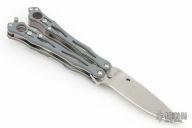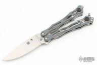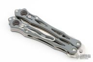 Spyderco's original SmallFly was a uniquely different "spin" on the balisong, or Filipino butterfly knife. Now this remarkable design is back with this special limited featuring full-flat-ground, drop-point blade profile crafted from CPM-Cru-Wear. Like the original, it features skeletonized twin handles with full stainless steel liners and peel-ply-textured Gray G-10 scales. The Round Holes at the butt end of both handles reflect Spyderco's iconic trademark and help achieve optimal balance for high-speed manipulation. A spring-loaded latch attached to the "free" handle secures the handles together in the closed position, while the removable wire pocket clip may be attached to either side of both handles as both a carry option and tactile index.