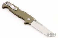 Inspired by the popular Cold Steel SRK fixed blade, the SR1 offers the same highly functional tactical design in a compact folder. Andrew Demko set out to design a high-end tactical folding knife for military applications. The SR1 embodies his minimalist style with top-quality materials and a no-nonsense practical design. The blade is crafted from thick American CPM-S35VN steel that was made to put to work. American-made G-10 handle scales further the appeal of this model and provide a reliable grip for bare or gloved hands. Nested steel liners offer a solid foundation with a Tri-Ad lock for secure blade lock up. Manage any tactical situation with the Cold Steel SR1 folding knife.