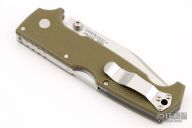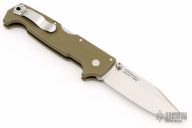 Inspired by the popular Cold Steel SRK fixed blade, the SR1 offers the same highly functional tactical design in a compact folder. Andrew Demko set out to design a high-end tactical folding knife for military applications. The SR1 embodies his minimalist style with top-quality materials and a no-nonsense practical design. The blade is crafted from thick American CPM-S35VN steel that was made to put to work. American-made G-10 handle scales further the appeal of this model and provide a reliable grip for bare or gloved hands. Nested steel liners offer a solid foundation with a Tri-Ad lock for secure blade lock up. Manage any tactical situation with the Cold Steel SR1 folding knife.