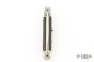 This Swivel Bolster by Frank Beltrame features a polished flat ground blade. The handle has stainless steel bolsters, front and rear, black synthetic scales, brass liners, stainless spring. Excellent condition.